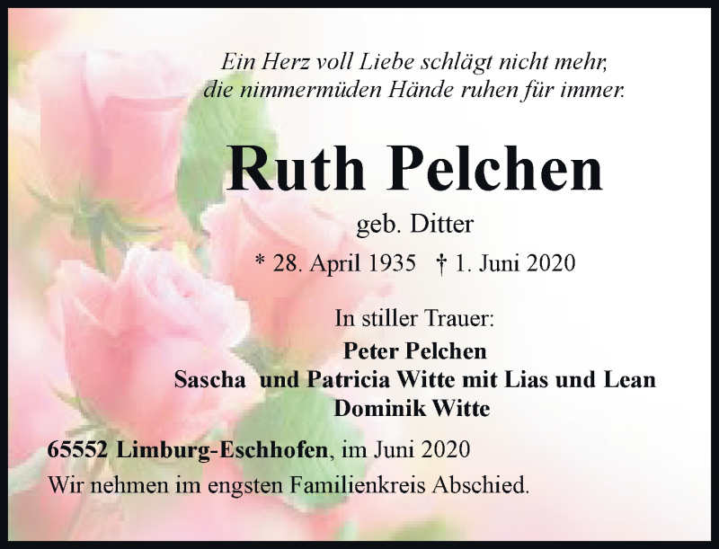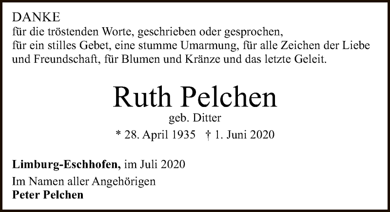 Hier finden Sie alle Traueranzeigen aus der Zeitung, die bisher für Ruth Pelchen erschienen sind. Weitere Traueranzeigen, die in der Zeitung erscheinen, werden hier ebenfalls aufgelistet
