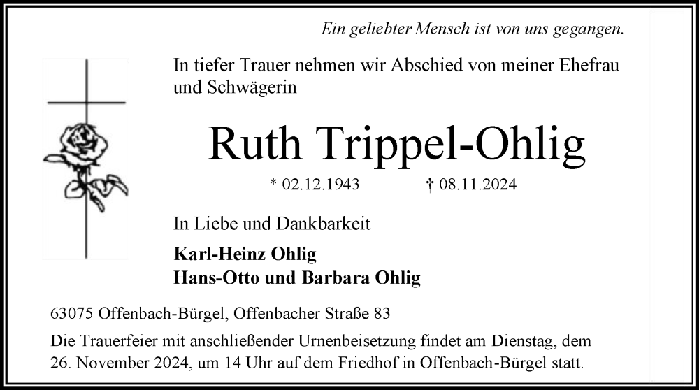 Hier finden Sie alle Traueranzeigen aus der Zeitung, die bisher für Ruth Trippel-Ohlig erschienen sind. Weitere Traueranzeigen, die in der Zeitung erscheinen, werden hier ebenfalls aufgelistet