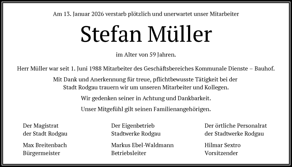 Hier finden Sie alle Traueranzeigen aus der Zeitung, die bisher für Stefan Müller erschienen sind. Weitere Traueranzeigen, die in der Zeitung erscheinen, werden hier ebenfalls aufgelistet