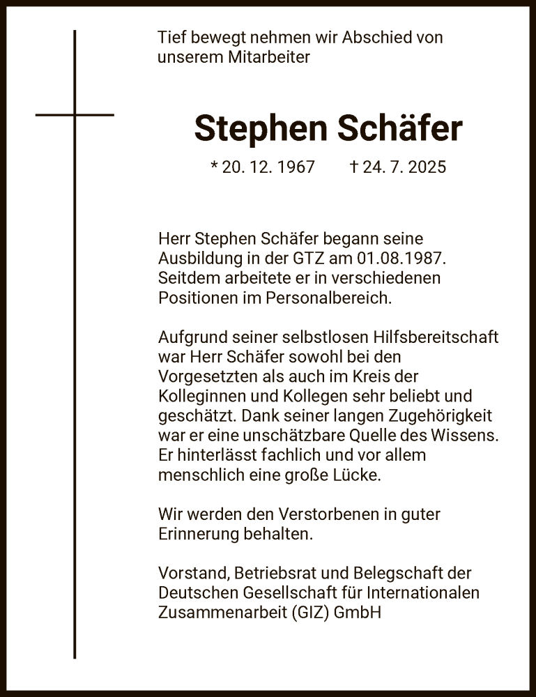 Hier finden Sie alle Traueranzeigen aus der Zeitung, die bisher für Stephen Schäfer erschienen sind. Weitere Traueranzeigen, die in der Zeitung erscheinen, werden hier ebenfalls aufgelistet
