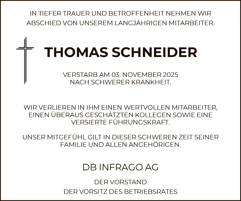 Hier finden Sie alle Traueranzeigen aus der Zeitung, die bisher für Thomas Schneider erschienen sind. Weitere Traueranzeigen, die in der Zeitung erscheinen, werden hier ebenfalls aufgelistet