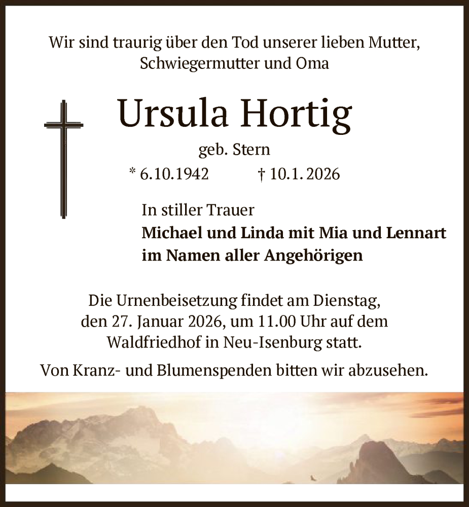 Hier finden Sie alle Traueranzeigen aus der Zeitung, die bisher für Ursula Hortig erschienen sind. Weitere Traueranzeigen, die in der Zeitung erscheinen, werden hier ebenfalls aufgelistet