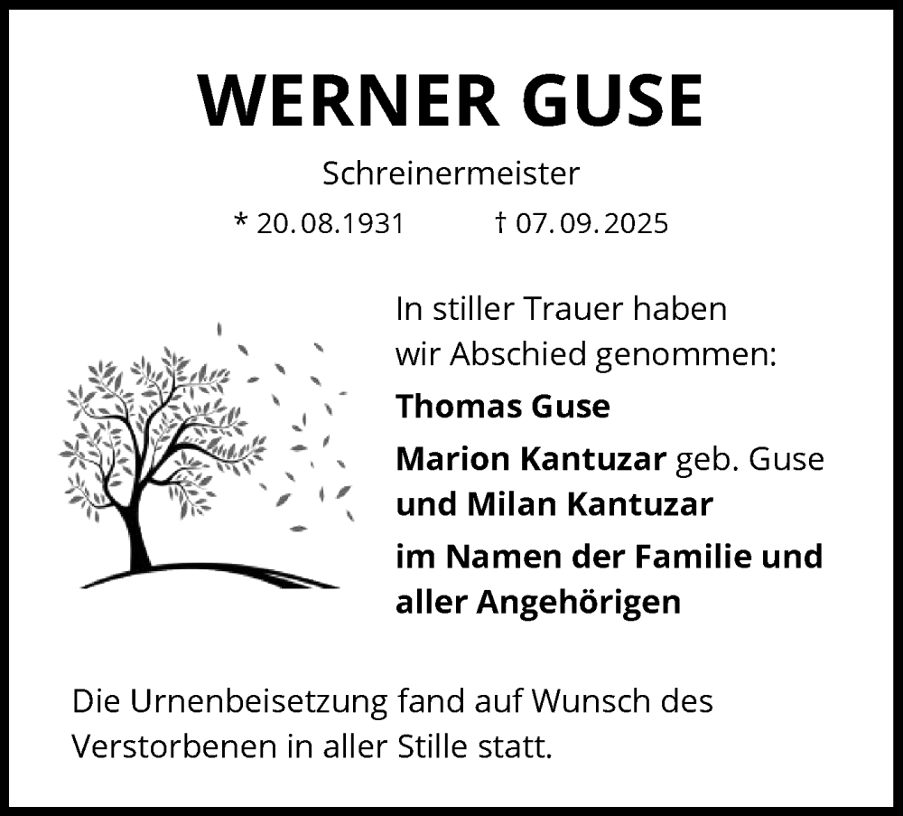 Hier finden Sie alle Traueranzeigen aus der Zeitung, die bisher für Werner Guse erschienen sind. Weitere Traueranzeigen, die in der Zeitung erscheinen, werden hier ebenfalls aufgelistet