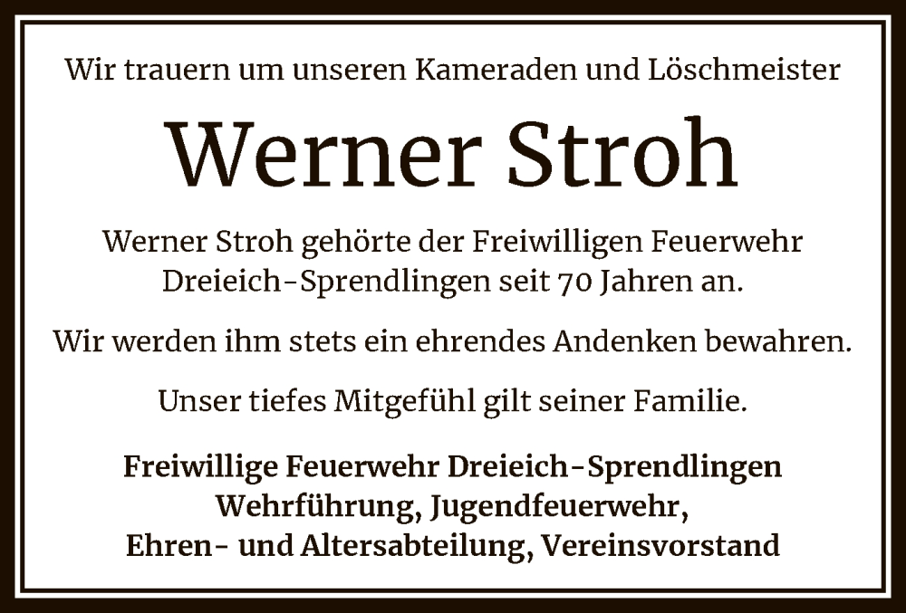 Hier finden Sie alle Traueranzeigen aus der Zeitung, die bisher für Werner Stroh erschienen sind. Weitere Traueranzeigen, die in der Zeitung erscheinen, werden hier ebenfalls aufgelistet