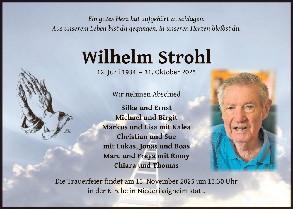 Hier finden Sie alle Traueranzeigen aus der Zeitung, die bisher für Wilhelm Strohl erschienen sind. Weitere Traueranzeigen, die in der Zeitung erscheinen, werden hier ebenfalls aufgelistet