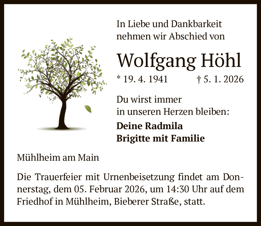Hier finden Sie alle Traueranzeigen aus der Zeitung, die bisher für Wolfgang Höhl erschienen sind. Weitere Traueranzeigen, die in der Zeitung erscheinen, werden hier ebenfalls aufgelistet
